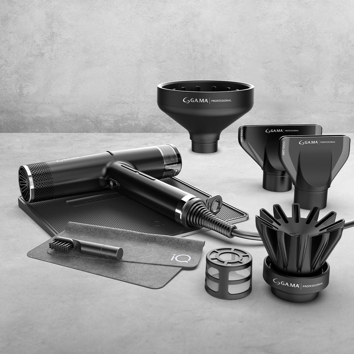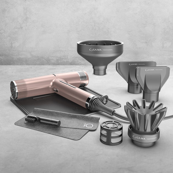 Support officiel pour sèche-cheveux IQ ; conception élégante pour le comptoir ou l'espace de travail ; support peu encombrant pour le coiffeur professionnel ultime.