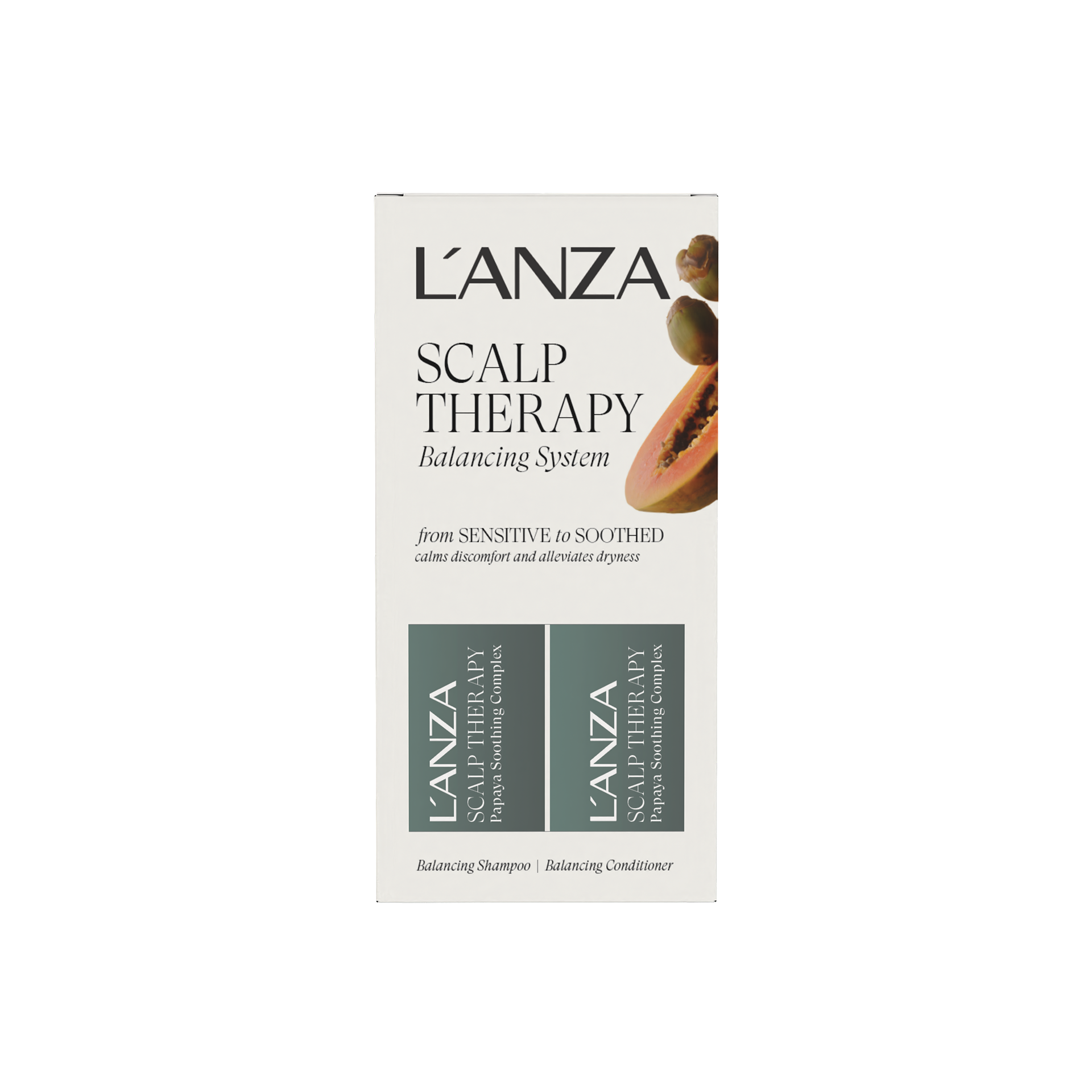 Le coffret Balancing System offre un rituel de guérison pour un cuir chevelu sec et irrité.